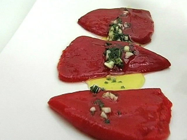 Угостите гостей пресервами из жареных красных перцев.Состав:красный перец — 3 штуки;вода — 1/2 стакана;зеленый лук — 1 столовая ложка;чеснок — 1 столовая ложка;сахар, соль, оливковое масло — по вкусу. Язык: Русский