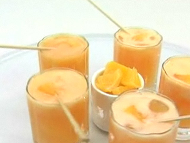 Освежающий безалкогольный коктейль из цитруовых.Состав:апельсины — 2 штуки;мандарины — 2 штуки;грейпфрут — 1/2 штуки;лимон — 1/2 штуки;мед — 2 столовых ложки;газированная вода, лед. Язык: Русский